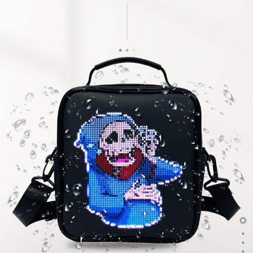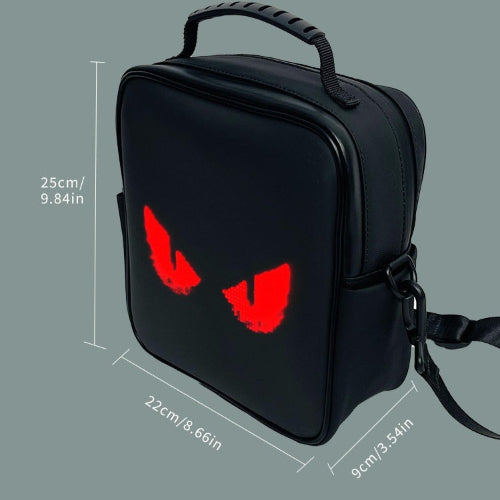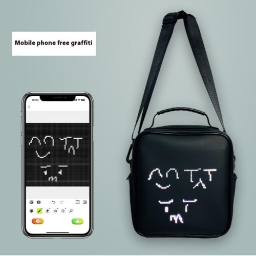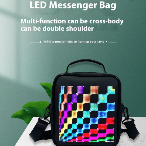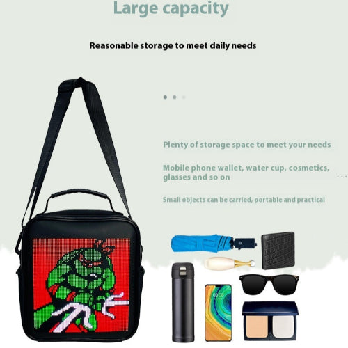Den programmerbare LED-skuldervesken med smart app er en innovativ og stilig veske designet for å kombinere mote med teknologi. Den har en innebygd LED-skjerm som kan tilpasses ved hjelp av en smarttelefonapplikasjon, slik at brukeren kan vise personlige meldinger, bilder eller animasjoner på vesken.